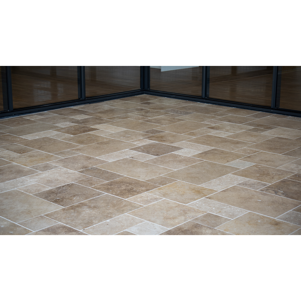 Travertine Paver Ivory Tumbled French Pattern Set 12mm