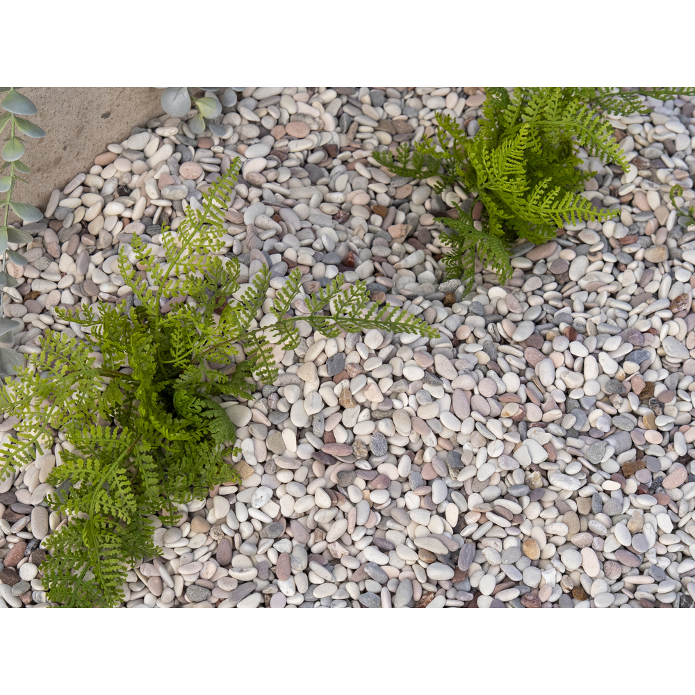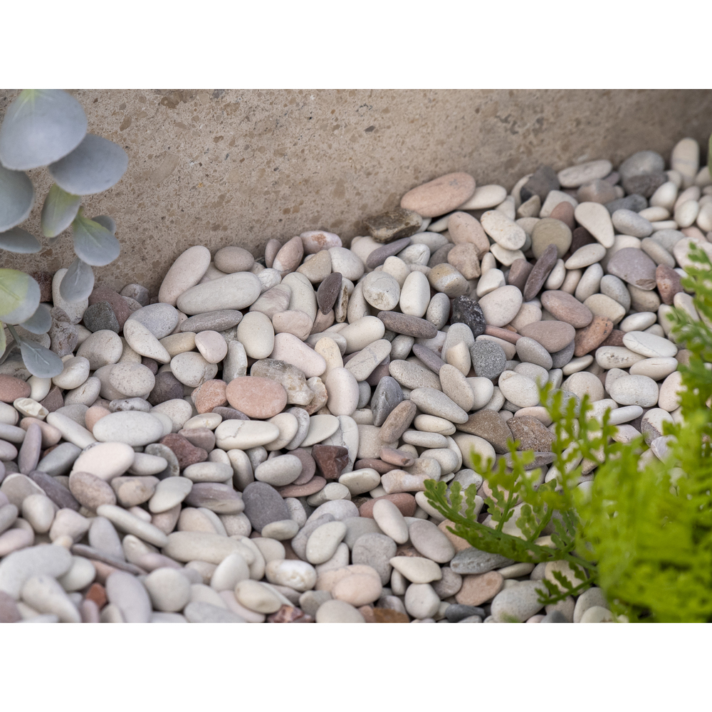 Featuring a soft mix of light greys, off-white and warm sandy tones, these naturally rounded pebbles offer subtle texture and organic movement. Occasional shells are mixed through, adding character and reinforcing a coastal aesthetic. Their smaller size makes Dunestone ideal for cactus gardens, feature areas, garden beds, and decorative ground cover where a fine, natural finish is desired. Durable and low maintenance, Dunestone is perfect for creating soft, informal landscapes with an effortless coastal appeal.